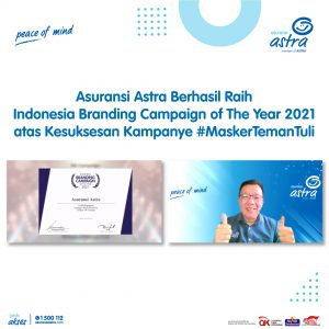 “Asuransi Astra selalu melangkah dengan tujuan untuk Bring Peace of Mind to Millions, di mana kami selalu berusaha untuk terus memberikan manfaat kepada seluruh masyarakat, baik itu para pelanggan maupun masyarakat secara umum, termasuk kepada teman-teman Tuli. Melalui misi sosial kampanye #MaskerTemanTuli, kami memberikan solusi untuk kesulitan komunikasi yang dihadapi oleh teman Tuli, dan kami bersyukur gerakan ini mendapatkan dukungan luar biasa dari berbagai pihak. Menjadi kebanggaan besar bagi kami setelah mengetahui bahwa #MaskerTemanTuli kembali mendapat apresiasi dari Marketeers dengan penghargaan Indonesia Branding Campaign of The Year 2021. Semoga ke depannya Asuransi Astra akan terus menjadi sebuah brand yang humanis dan dapat memberikan kontribusi nyata serta peace of mind kepada masyarakat”, ungkap Gunawan Salim.