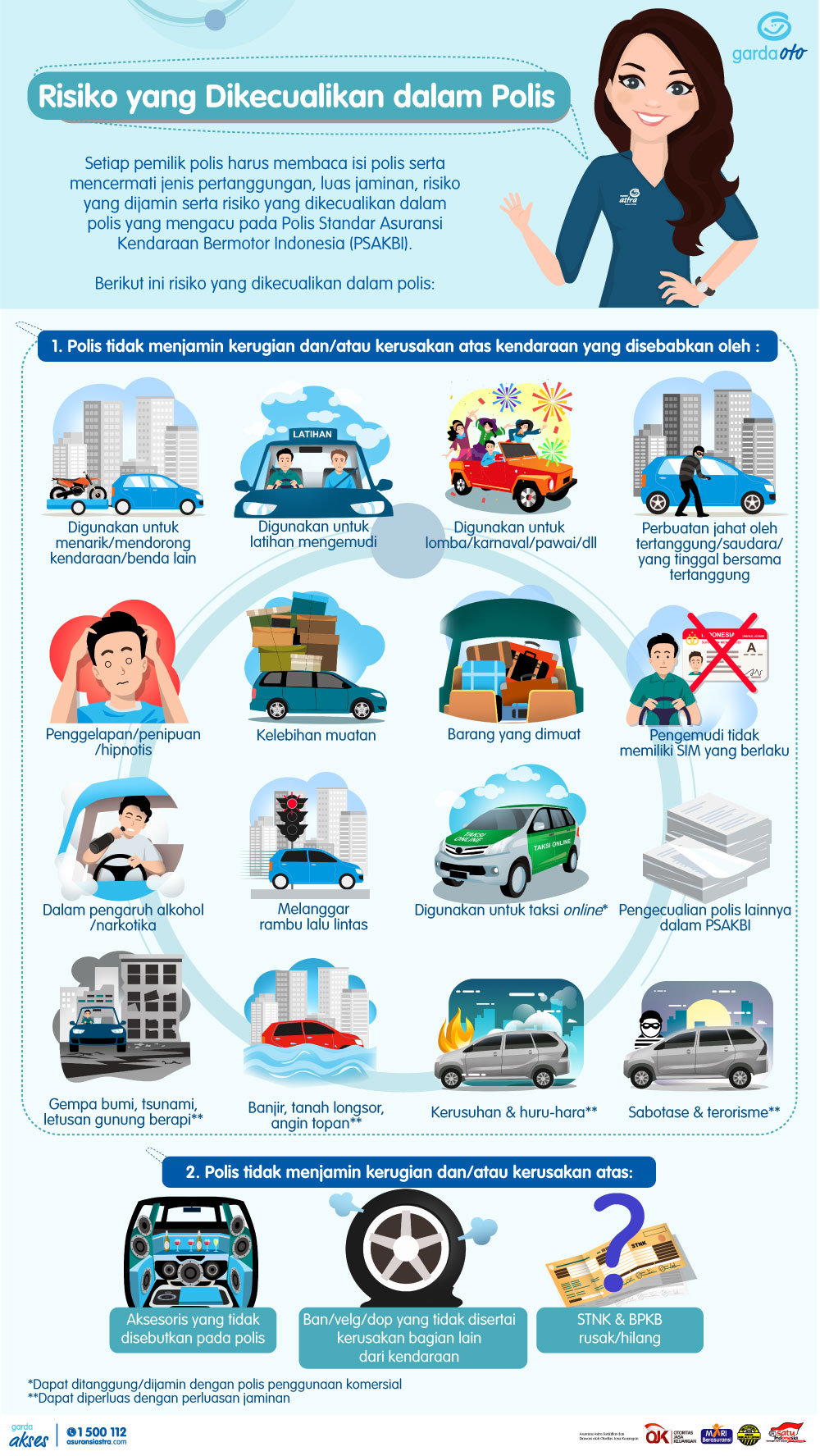 Untuk itu penting bagi pemilik kendaraan untuk memahami dan mempelajari di awal ketentuan yang berlaku dalam polis asuransi kendaraannya, termasuk risiko yang dikecualikan dalam polis yang tidak dapat ditanggung oleh pihak asuransi.