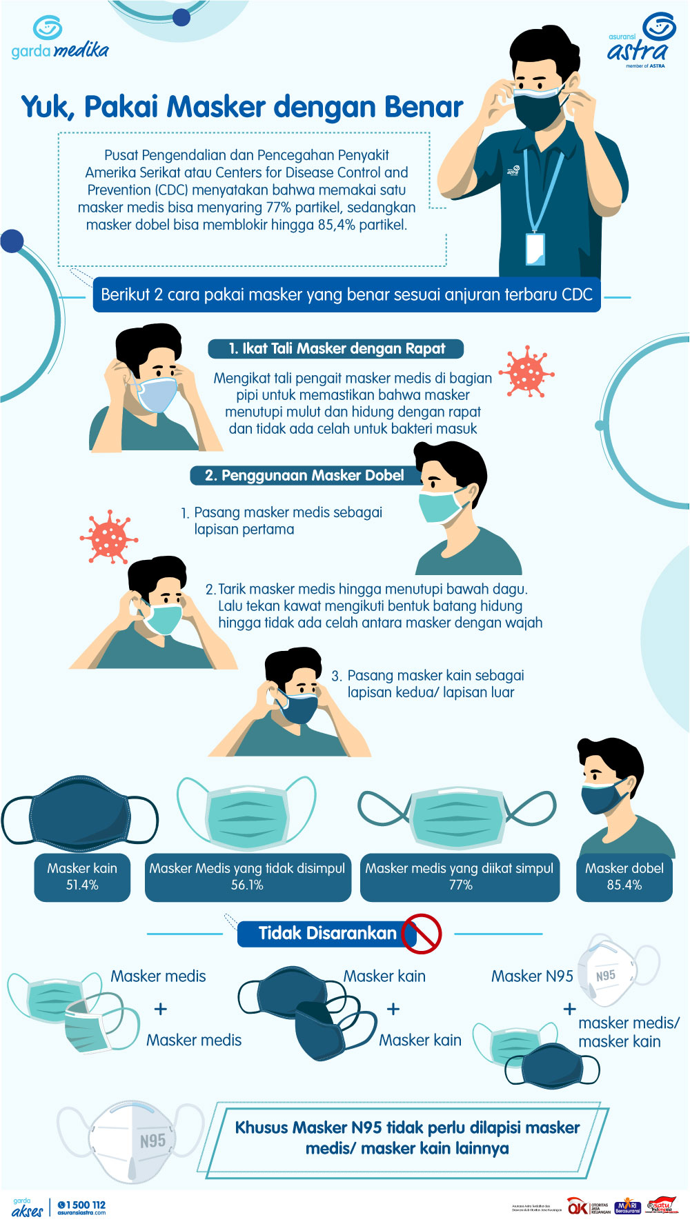 Saat ini, penggunaan masker adalah salah satu protokol kesehatan yang wajib dilakukan. Cara pemakaian masker yang benar pun harus dilakukan agar efektif mencegah penularan COVID-19.