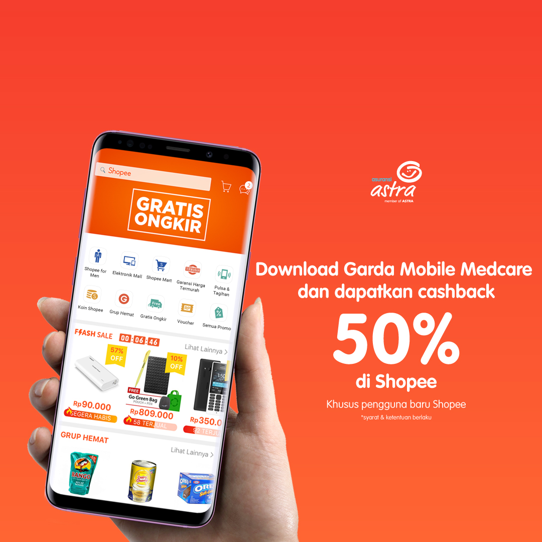 Install Garda Mobile Otocare, dapatkan cashback 50% khusus pengguna baru di aplikasi Shopee.
